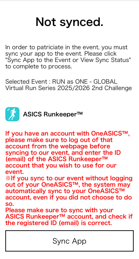 5. Kliknij „Sync App”, zaloguj się do ASICS Runkeeper™ .