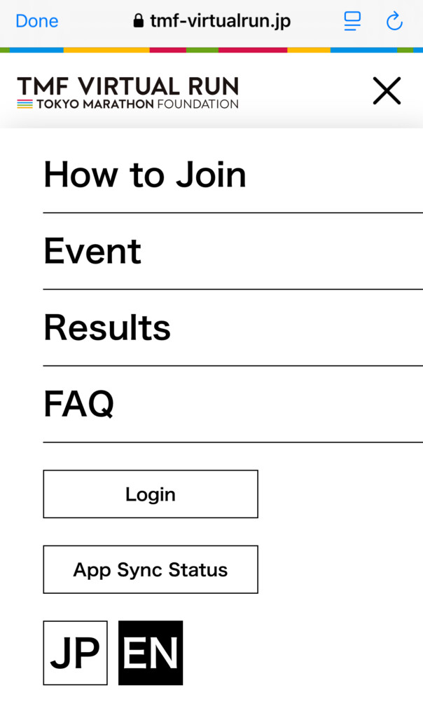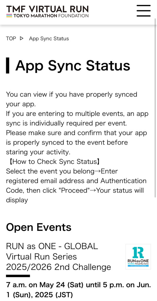 1. Otwórz menu (trzy linie) na stronie TMF Virtual Run .